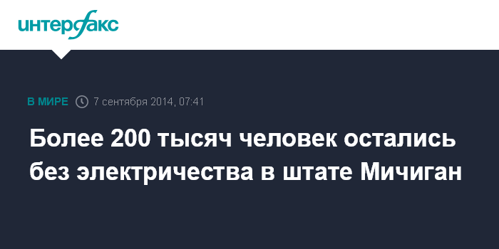 Москва. 7 сентября. INTERFAX.RU - Сильнейшие бури прошлым вечером оставили без электроэнергии 230 тысяч человек в районе Детройта, сообщил телеканал CNN.