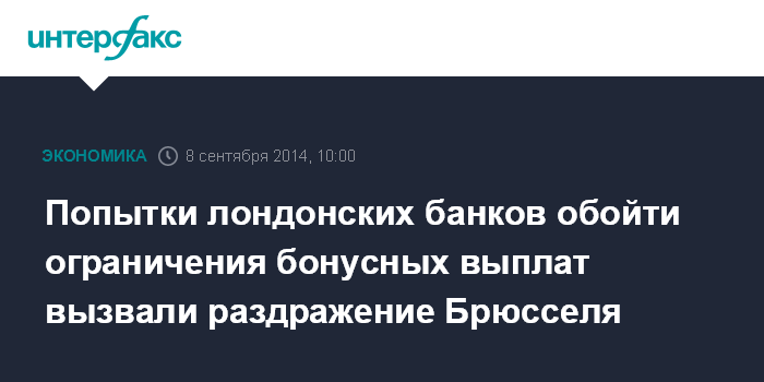 Попытки лондонских банков обойти ограничения бонусных выплат вызвали раздражение Брюсселя