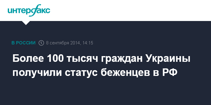 По данным ООН, в Россию на начало августа бежали около 730 тысяч беженцев с Украины, покинувших страну из-за вооруженного конфликта на юго-востоке. Как сообщил европейского бюро управления верховного комиссара ООН по делам беженцев Венсан Коштель, 168 тысяч из них обратились в Федеральную миграционную службу России. В конце августа вице-премьер России Ольга Голодец отмечала, что в России находятся более 207 тыс. беженцев с Украины. При этом в Миграционной службе добавили, что более 33 тыс. человек обратились за получением российского гражданства.