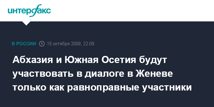 Абхазия и Южная Осетия будут участвовать в диалоге в Женеве только как равноправные участники