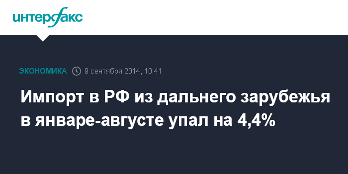 Москва. 9 сентября. INTERFAX.RU - Импорт в Россию товаров из стран дальнего зарубежья за январь-август 2014 года составил $170 млрд 175,6 млн, что на 4,4% меньше соответствующего показателя 2013 года.