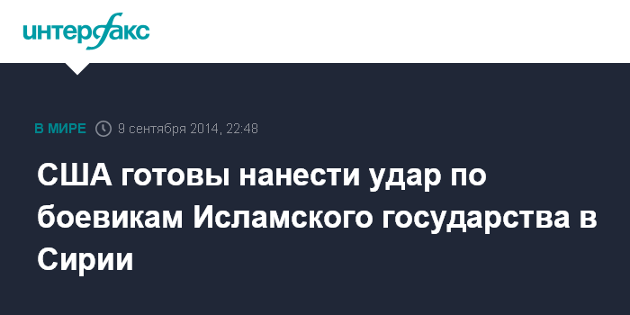Москва. 9 сентября. INTERFAX.RU - Власти США могут принять решение о нанесении ударов по территории Сирии в рамках борьбы с боевиками из группировки "Исламское государство" (ИГ), пишет во вторник газета The Washington Post со ссылкой на людей, которые в последние дни общались с президентом США Бараком Обамой.