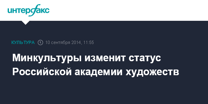 Со своей стороны, в Минкультуры РФ агентству подтвердили, что изменение статуса РАХ действительно планируется. "Так же как и Российская академия наук, Российская академия художеств изменит свой статус - отныне академии не имеют права иметь подведомственные учебные заведения", - заявил "Интерфаксу" заместитель министра культуры РФ Григорий Ивлиев.