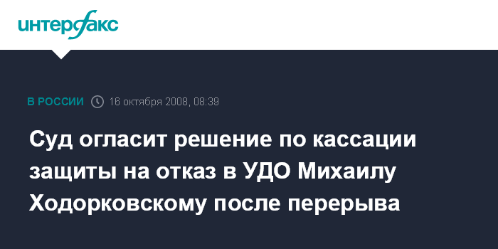 Суд огласит решение по кассации защиты на отказ в УДО Михаилу Ходорковскому после перерыва