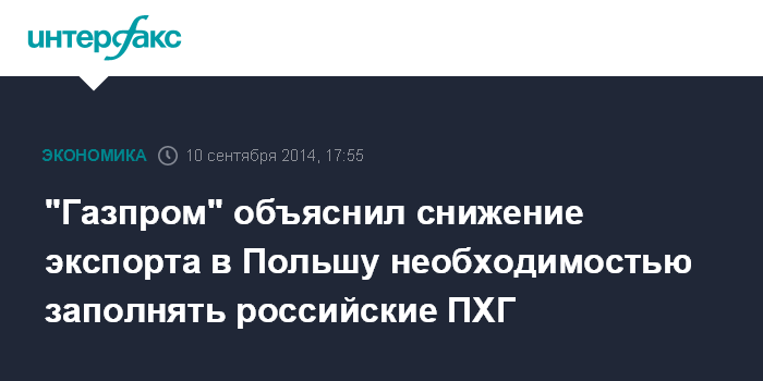 "Газпром" объяснил снижение экспорта в Польшу необходимостью заполнять российские ПХГ
