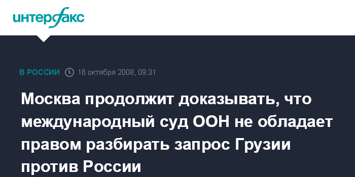 Москва. 16 октября. INTERFAX.RU - Россия считает, что международный суд ООН, рассматривающий запрос Грузии против России, не обладает юрисдикцией по данному делу.