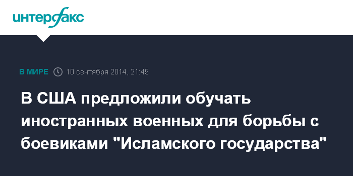 Москва. 10 сентября. INTERFAX.RU - Американские демократы работают над законопроектом, который в случае принятия даст США право готовить служащих иностранных войск для борьбы с боевиками из радикальной группировки "Исламское государство" (ИГ), пишет в среду американская газета The New York Times.