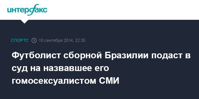 Футболист сборной Бразилии подаст в суд на назвавшее его гомосексуалистом СМИ