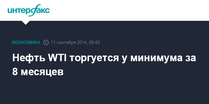 Москва. 11 сентября. INTERFAX.RU - Цены на нефть практически стабильны в ходе торгов в четверг. West Texas Intermediate колеблется у самой низкой отметки за восемь месяцев на ожиданиях, что рост добычи углеводородов в США усилит переизбыток предложения в этой стране, сообщает агентство Bloomberg.