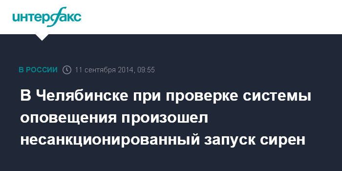 Москва. 11 сентября. INTERFAX.RU - ГУ МЧС РФ по Челябинской области выясняет, кто запустил сирены в Челябинске утром в четверг.