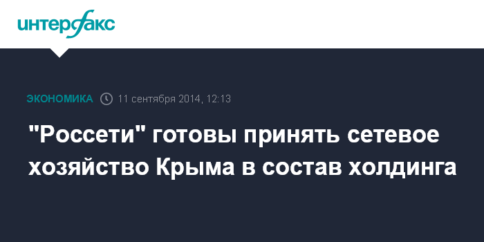 Москва. 11 сентября. INTERFAX.RU - "Россетти" готовы принять сетевое хозяйство Крыма в состав холдинга, соответствующее предложение сделано руководству республики, сообщил гендиректор компании Олег Бударгин журналистам в четверг.