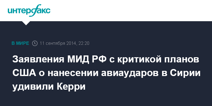 Заявления МИД РФ с критикой планов США о нанесении авиаударов в Сирии удивили Керри