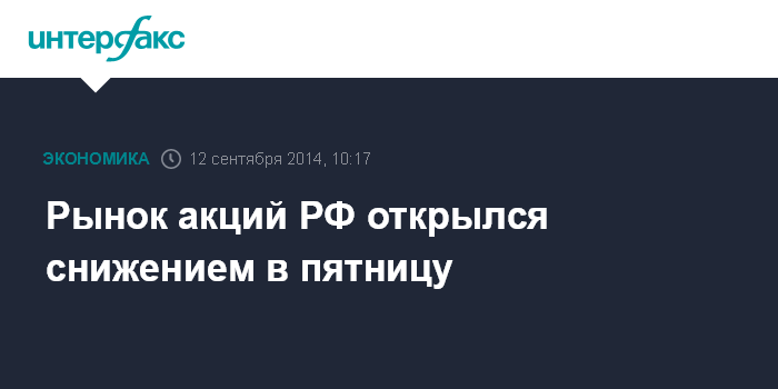 Москва. 12 сентября. INTERFAX.RU - Рынок акций России открылся в пятницу снижением цен blue chips на фоне сохранившихся с прошлого дня продаж после известий о введении новых антироссийских санкций со стороны Запада; индексы ММВБ и РТС за минуту торгов потеряли 0,1-0,3%.