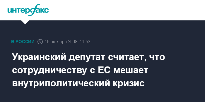 Украинский депутат считает, что сотрудничеству с ЕС мешает внутриполитический кризис