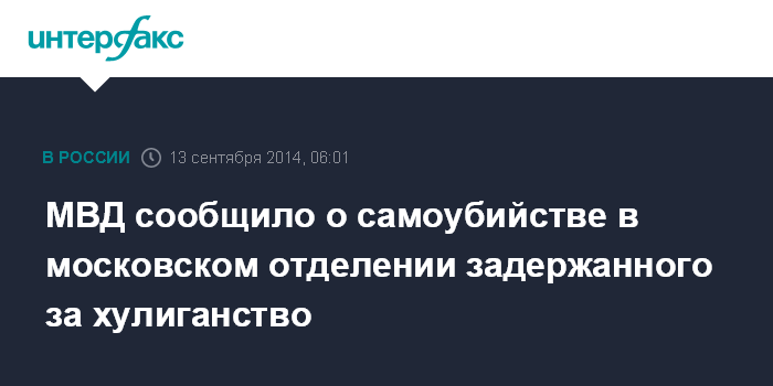 МВД сообщило о самоубийстве в московском отделении задержанного за хулиганство