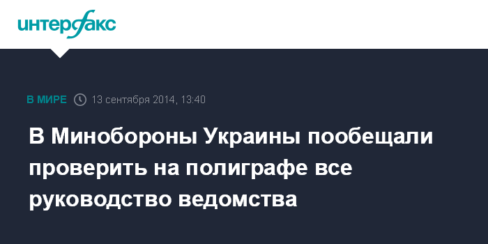 Москва. 13 сентября. INTERFAX.RU - Министр обороны Украины Валерий Гелетей заявляет о намерении проверить на "детекторе лжи" все руководство Минобороны и офицеров Генерального штаба.