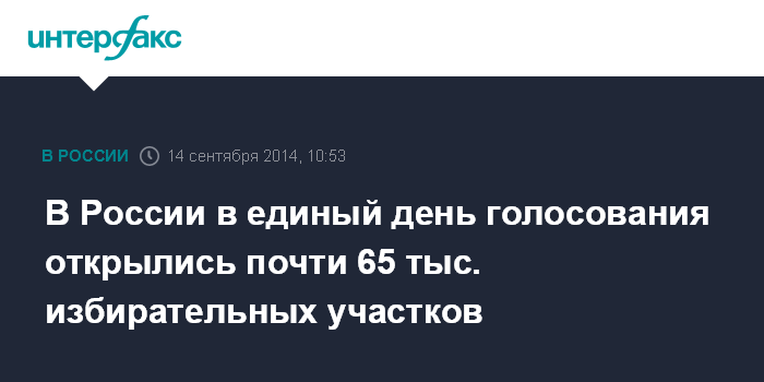 Москва. 14 сентября. INTERFAX.RU - Более 64,6 тыс. избирательных участков на территории России открыты и начали свою работу, заявил заместитель председателя Центризбиркома Леонид Ивлев.