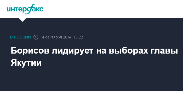 Москва. 14 сентября. INTERFAX.RU - После обработки первых бюллетеней на досрочных выборах главы Якутии лидирует врио нынешнего руководителя республики Егор Борисов. По данным ЦИК Якутии, Борисов, которого выдвинула "Единая Россия", набирает 57,14% голосов.