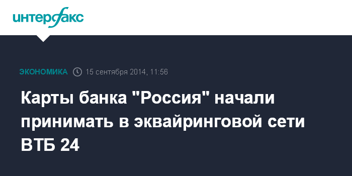 Карты банка "Россия" начали принимать в эквайринговой сети ВТБ 24