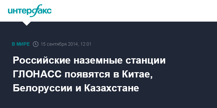 Российские наземные станции ГЛОНАСС появятся в Китае, Белоруссии и Казахстане