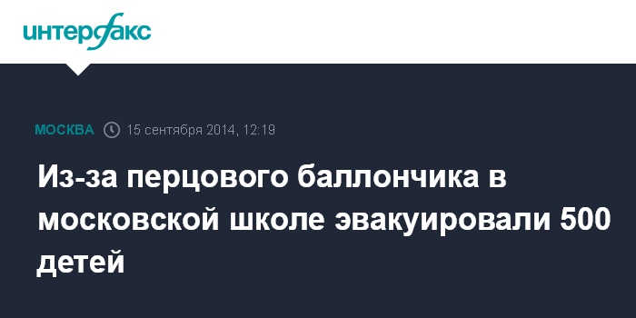 Москва. 15 сентября. INTERFAX.RU - Около 500 детей эвакуированы из школы в Юго-Западном округе Москвы из-за распыленного перцового баллончика, сообщил "Интерфаксу" источник в правоохранительных органах.