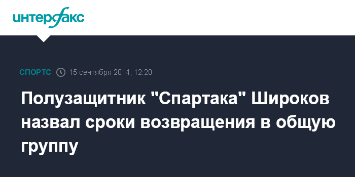 Москва. 15 сентября. INTERFAX.RU - Футболист московского "Спартака" Роман Широков отметил, что к тренировкам с основным составом приступит 29 сентября.
