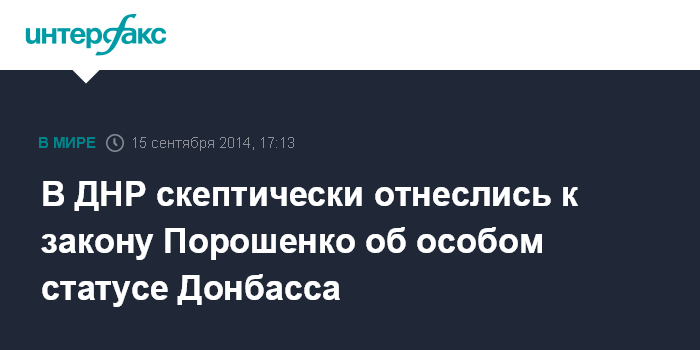 Ранее ряд СМИ сообщили, что президент Украины Петр Порошенко в законопроекте "Об особом статусе Донбасса", который получили депутаты Верховной рады в понедельник, предлагает ввести на три года особый порядок самоуправления в районах Донбасса, организовать 9 ноября досрочные выборы органов местного самоуправления в ряде районов региона, а также объявить амнистию для сторонников ополчения и гарантировать право использования в регионе русского языка.