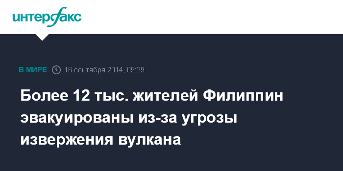 Более 12 тыс. жителей Филиппин эвакуированы из-за угрозы извержения вулкана