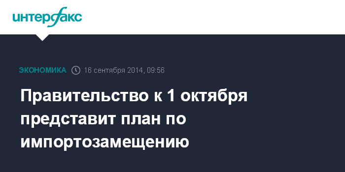 Москва. 16 сентября. INTERFAX.RU - Правительство России в ближайшее время представит подробный план по импортозамещению каждой группы товаров, для которой это требуется, сообщил вице-премьер Аркадий Дворкович.
