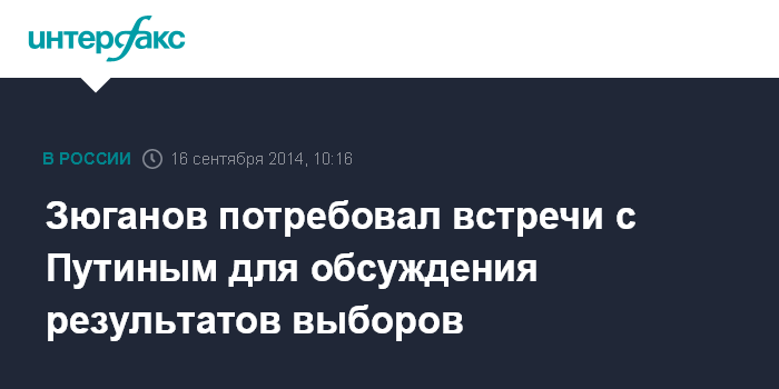 Москва. 16 сентября. INTERFAX.RU - Руководители оппозиционных думских фракций на открытии осенней сессии должны потребовать встречи с президентом России для обсуждения прошедших выборов, заявил лидер КПРФ Геннадий Зюганов.