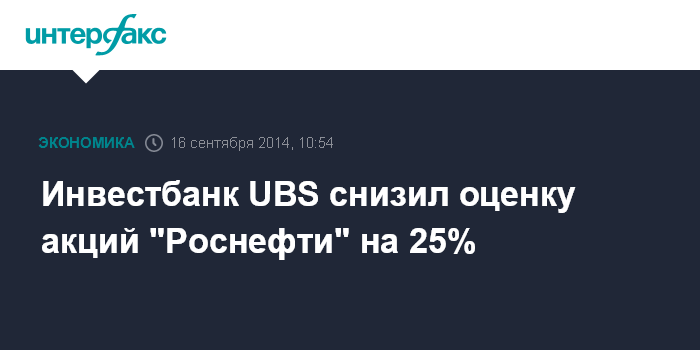 Москва. 16 сентября. INTERFAX.RU - Инвестиционный банк UBS снизил прогнозную стоимость акций "Роснефти" с $9 до $6,76 за штуку, сообщается в обзоре банка. Кроме того, для этих бумаг была понижена рекомендация с "покупать" до "держать".