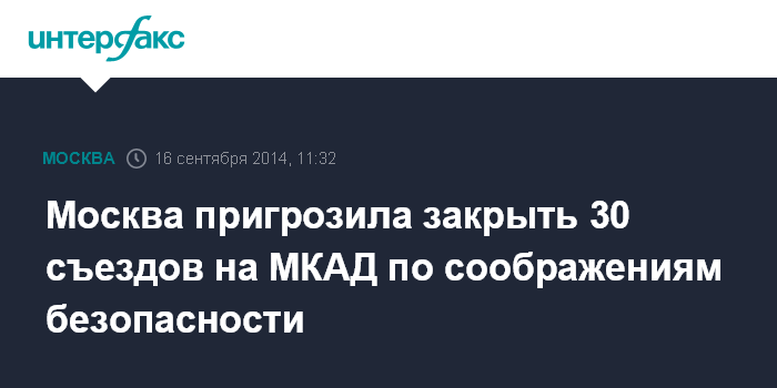 Москва пригрозила закрыть 30 съездов на МКАД по соображениям безопасности