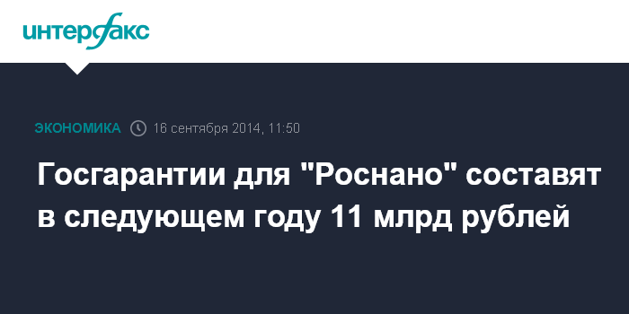 Госгарантии для "Роснано" составят в следующем году 11 млрд рублей