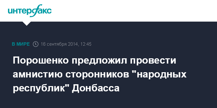 Москва. 16 сентября. INTERFAX.RU - Текст законопроекта президента Украины Петра Порошенко "О недопущении преследования и наказания лиц - участников событий на территории Донецкой и Луганской областей" обнародован на сайте Верховной рады во вторник.