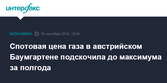 Москва. 16 сентября. INTERFAX.RU - Цена газа ближайшем к России спотовом хабе в австрийском Баумгартене продолжает свое восхождение по мере того как "Газпром" жестко контролирует поставки по ужгородскому коридору через Украину и Словакию.