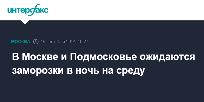Москва. 16 сентября. INTERFAX.RU - Во вторник ночью в Московской области ожидаются первые заморозки, заявил глава Гидрометцентра РФ Роман Вильфанд.