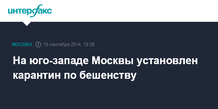 Москва. 16 сентября. INTERFAX.RU - Мэр Москвы Сергей Собянин подписал распоряжение о карантине в связи с заболеванием бешенством домашних животных на территории района Котловка Юго-Западного административного округа столицы.
