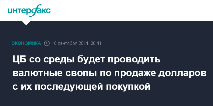 Москва. 16 сентября. INTERFAX.RU - ЦБ РФ принял решение о проведении операций "валютный своп" длительностью один день по продаже долларов США за рубли с их последующей покупкой, сообщается в пресс-релизе ЦБ РФ.