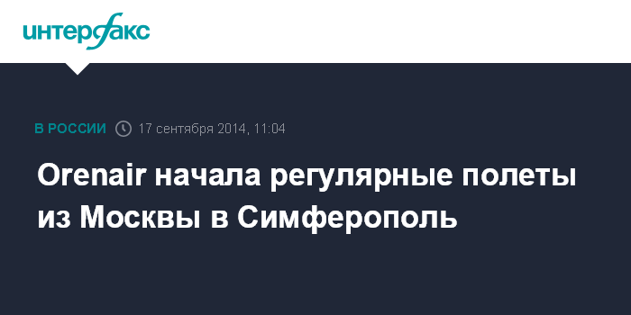 Москва. 17 сентября. INTERFAX.RU - ОАО "Оренбургские авиалинии" (Orenair) с 16 сентября начало выполнение регулярных рейсов по маршруту Москва - Симферополь - Москва, сообщает пресс-служба компании.