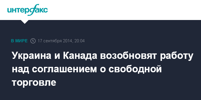 Москва. 17 сентября. INTERFAX.RU - Президент Украины Петр Порошенко и премьер-министр Канады Стивен Харпер договорились возобновить работу по подготовке проекта украинско-канадского соглашения о свободной торговле.