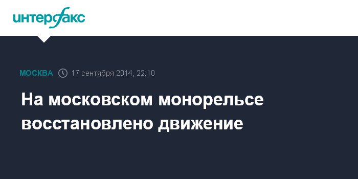 Москва. 17 сентября. INTERFAX.RU - Специалисты Московского метрополитена в среду вечером полностью восстановили движение поездов монорельсовой дороги, сообщили "Интерфаксу" в пресс-службе метро.