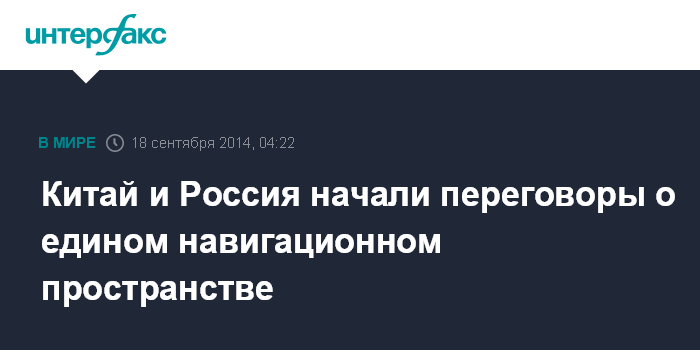 Москва. 18 сентября. INTERFAX.RU - Китай и Россия в ближайшие годы могут сформировать единое навигационное пространство (НП): начаты переговоры о гармонизации стандартов оборудования российской спутниковой навигационной системы ГЛОНАСС и китайской Beidou, сообщает газета "Известия" в четверг.