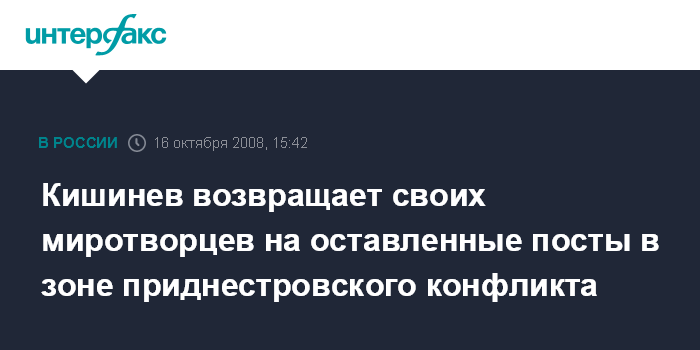 Бендеры. 16 октября. INTERFAX.RU - Кишинев возвращает своих миротворцев на посты, откуда они были выведены семь лет назад, объявил сопредседатель Объединенной контрольной комиссии от Молдавии Иван Солоненко на заседании ОКК в четверг.