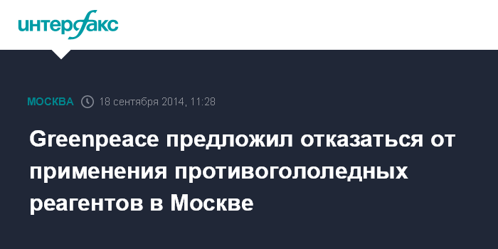 Москва. 18 сентября. INTERFAX.RU - Независимые экологи не согласны с мнением мэрии Москвы о том, что противогололедные реагенты, которые применяются зимой в столице, безопасны для окружающей среды.