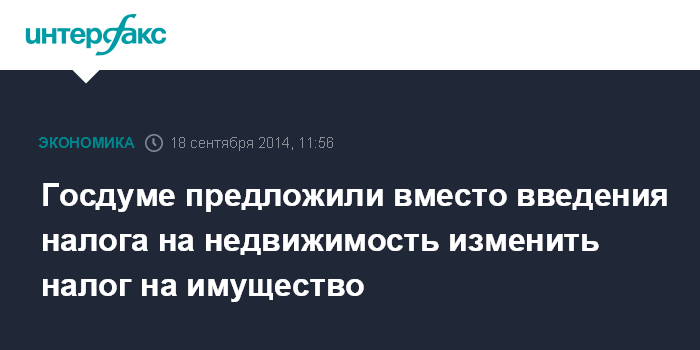 Госдуме предложили вместо введения налога на недвижимость изменить налог на имущество