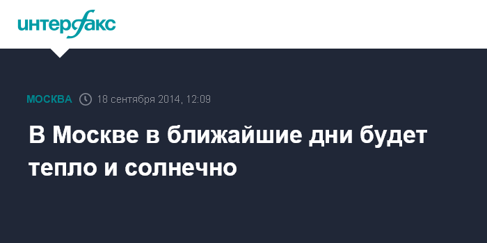 Москва. 18 сентября. INTERFAX.RU - Теплая и солнечная погода ждет столицу в пятницу и на выходных, сообщает Гидрометеобюро Москвы и Московской области.