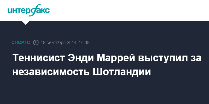 Москва. 18 сентября. INTERFAX.RU - Теннисист Энди Маррей, который является первым с 1936 года британцем, выигравшим Уимблдон, высказался за отделение Шотландии от Великобритании.