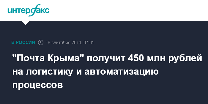 "Почта Крыма" получит 450 млн рублей на логистику и автоматизацию процессов