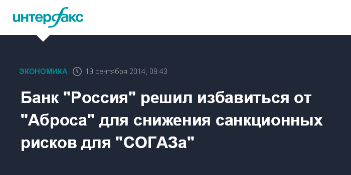 Банк "Россия" решил избавиться от "Аброса" для снижения санкционных рисков для "СОГАЗа"