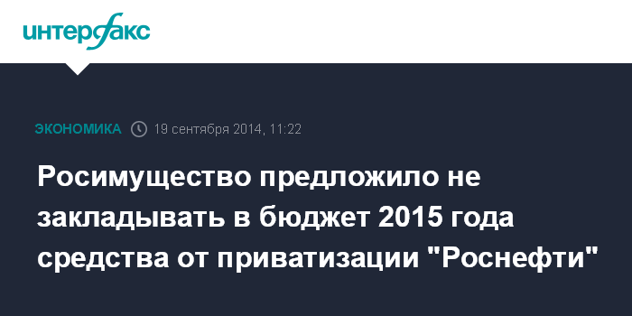 Росимущество предложило не закладывать в бюджет 2015 года средства от приватизации "Роснефти"